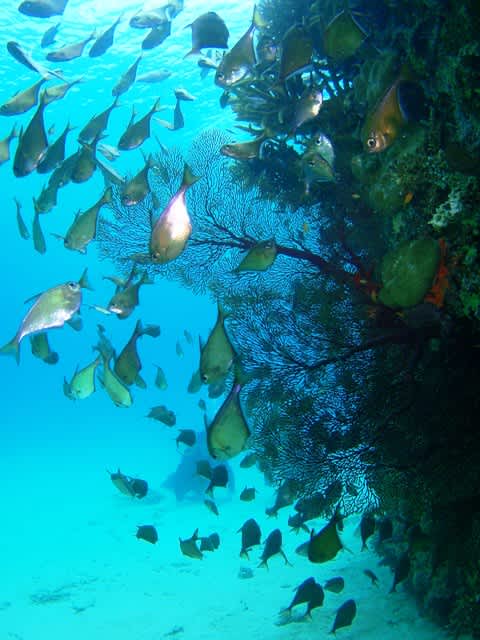 水中では何故かウメイロモドキやグルクンの群れがわんさか群れてまし