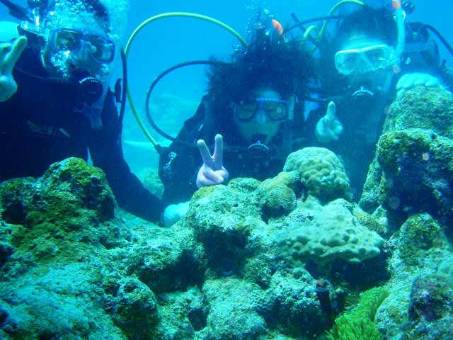 カメさんを見た後は珊瑚を見ながら海を泳いで船に戻りました(^_-)-☆