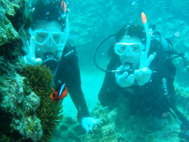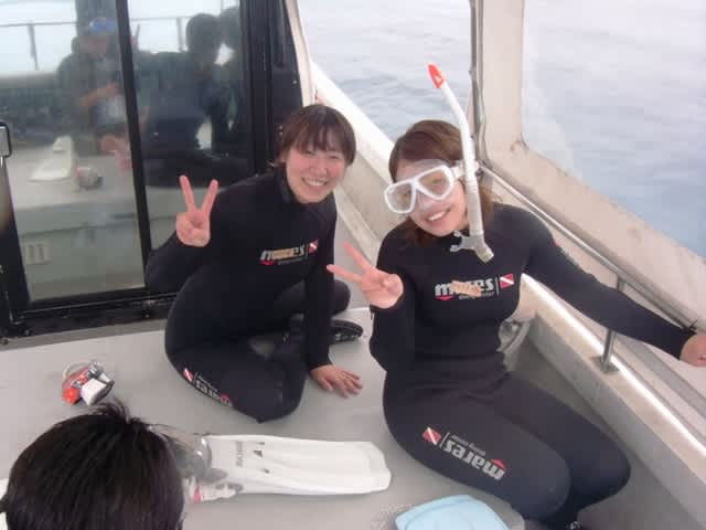 その後は船の上で体験ダイビングの講習をきいて次のポイントに移動です)^o^(