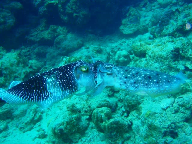 水中ではハマクマノミやコブシメ(イカ)ホソーい体のヘラヤガラなどを