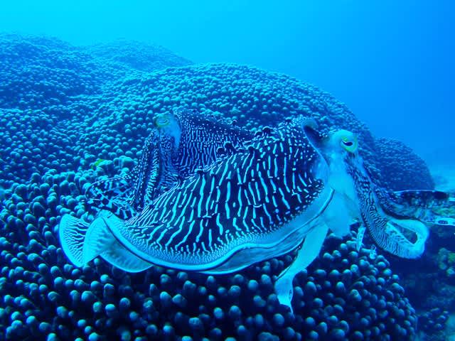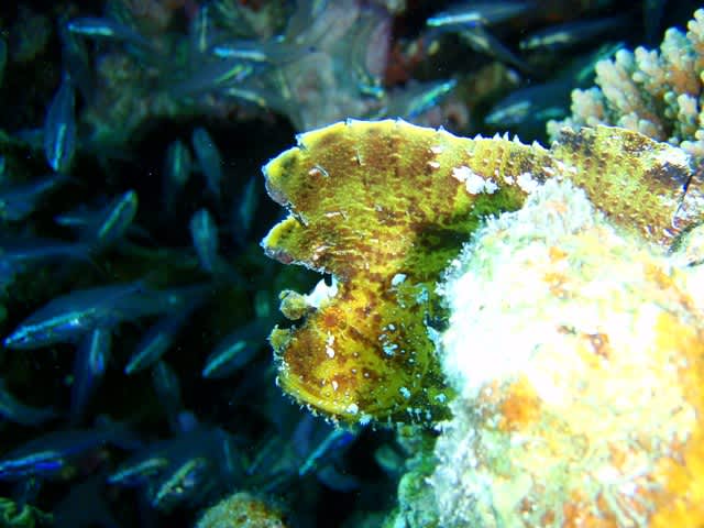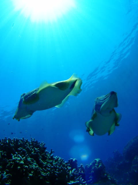 可愛らしいオビイシヨウジや、どこまでも後を付いて来るモンガラカワハギ…(汗)