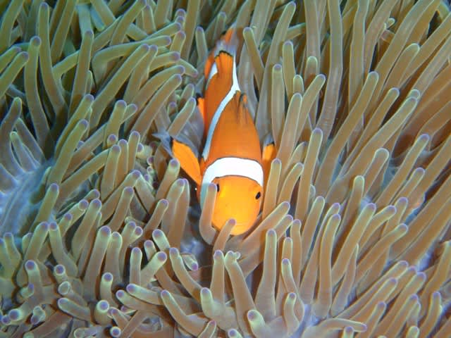 クマノミを見たり、ノコギリダイの群れを見たり、小さなエビを見たりと