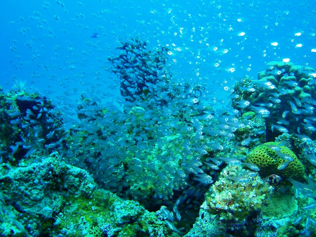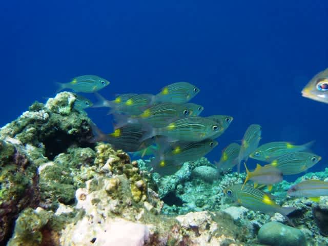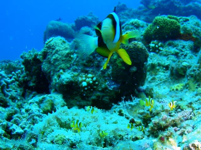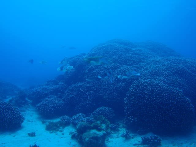 サンゴの上には沢山のスズメダイやハナゴイ、グルクンも泳ぎにきてました(^^ゞ