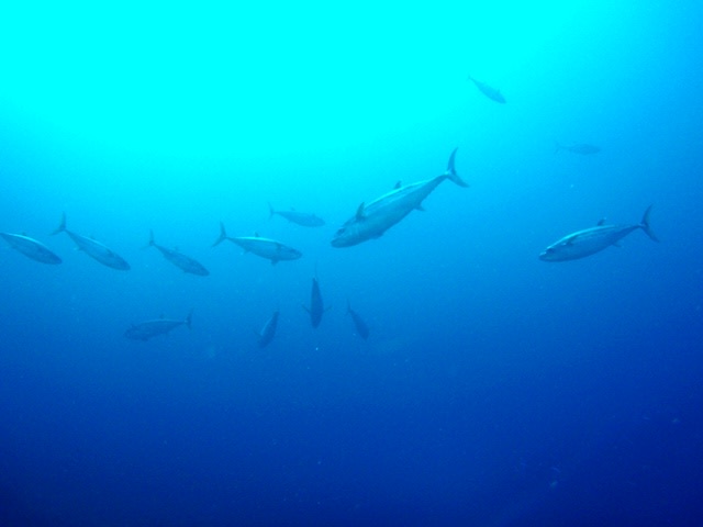 いそいそと逃げ惑うグルクン達^^;そして沖からデカマグロ登場ー!!