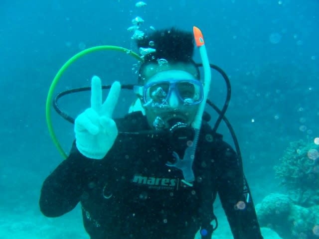 緊張しながら、ダイビング器材を装着して、いざ水中に潜ろうとしたのですが…