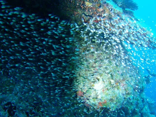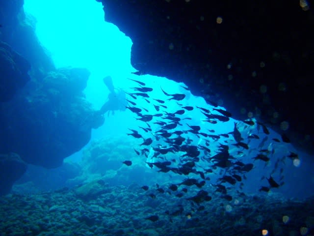 穴の中ではリュウキュウハタンポの群れを見たり、アカククリが泳いでいたりと