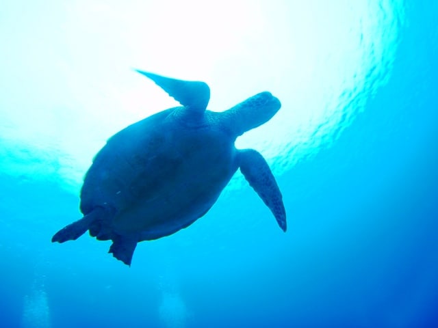 カメさんも僕たちの存在に気づき海の深いほうへ(^^♪