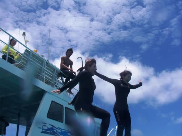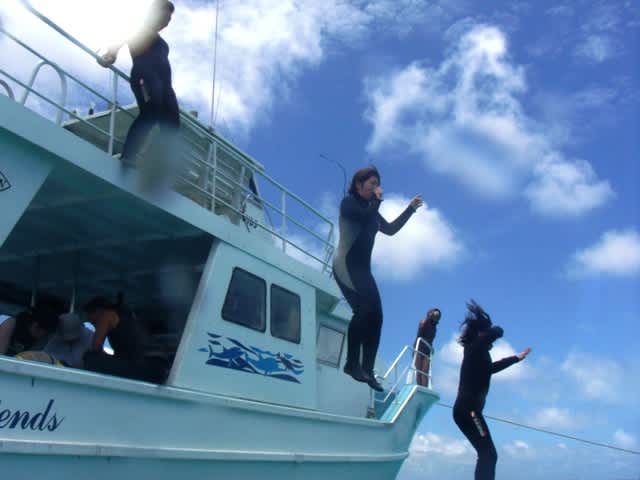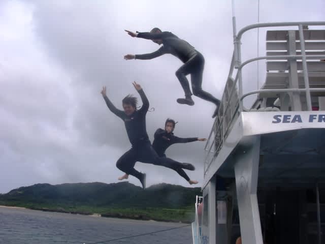 お昼休憩には、船の2階から海へ飛び込んじゃって、