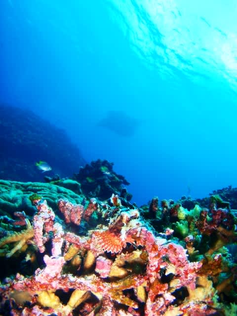 なんと今日は正面からマンタロウが僕等の方に向かって泳いで来てくれました(^_-)