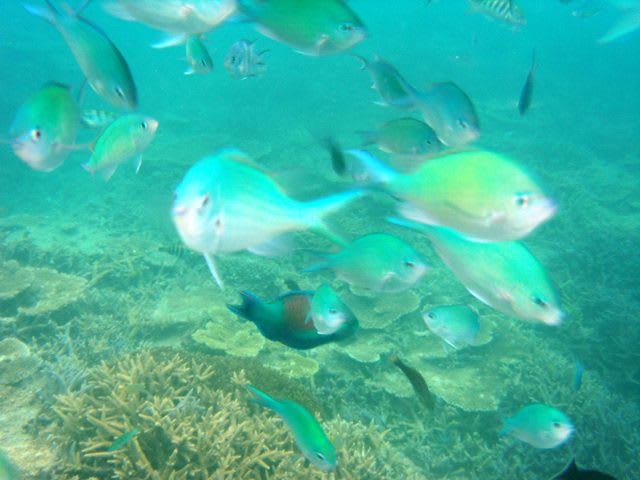 ここではスノーケルでサンゴ畑を水面から覗き見してきましたよ(^^)