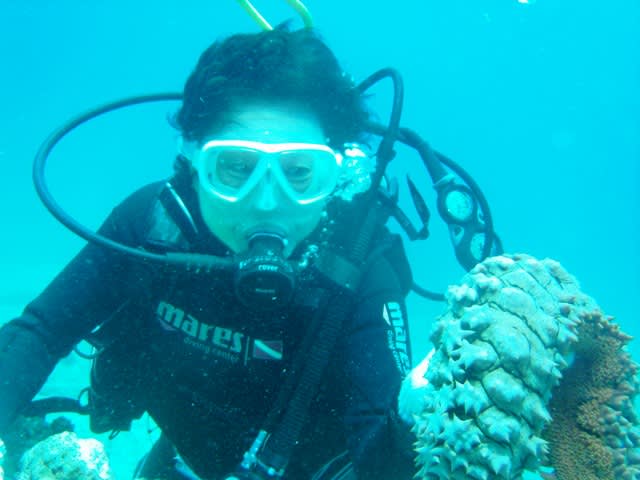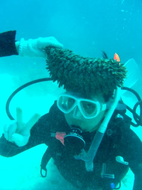 ナマコと写真を撮ったり、触るとハゲるサンゴを触ってみたり
