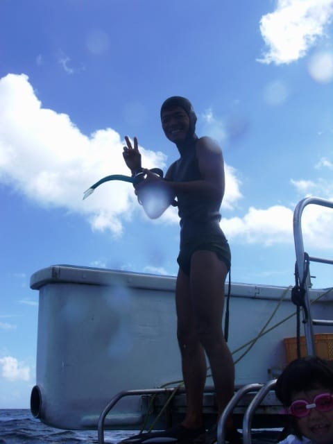 ベタ凪の海況の中、お昼ご飯を食べ今日も飛び込み大会で(^^ゞ