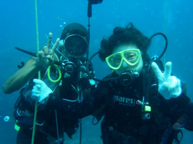 ベテラン体験ダイバーとマンツーマンで水中へ(^_-)