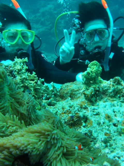 ソフトコーラル畑に各種クマノミも。2本目なのでとっても上手に潜れてましたね♪