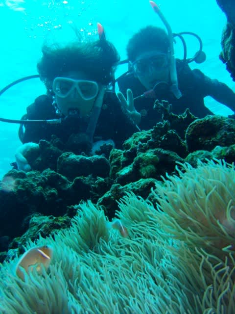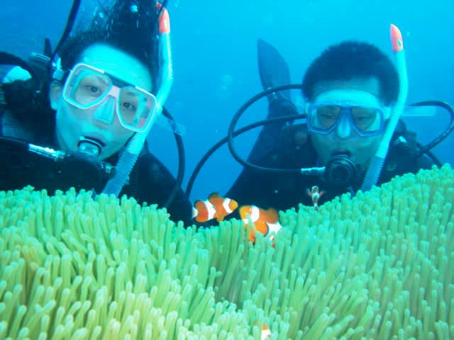 可愛らしいクマノミと戯れたり、