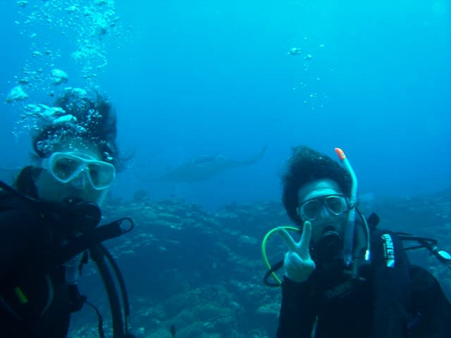 ドキドキしながら水中に潜ると、なんと正面からマンタ登場です♪