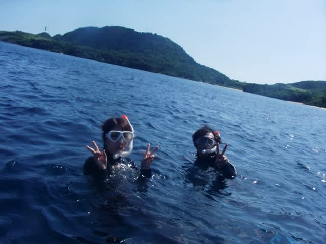 1本目は御神崎でカメを探して体験チームはスノーケリングです♪