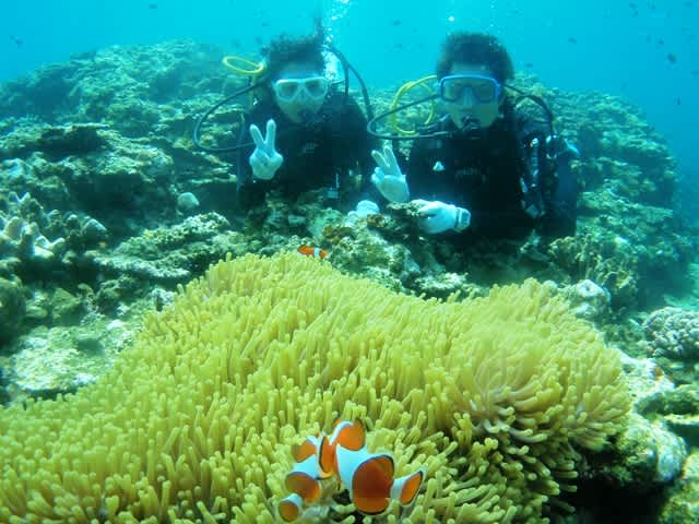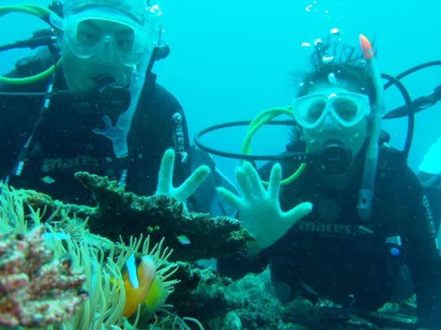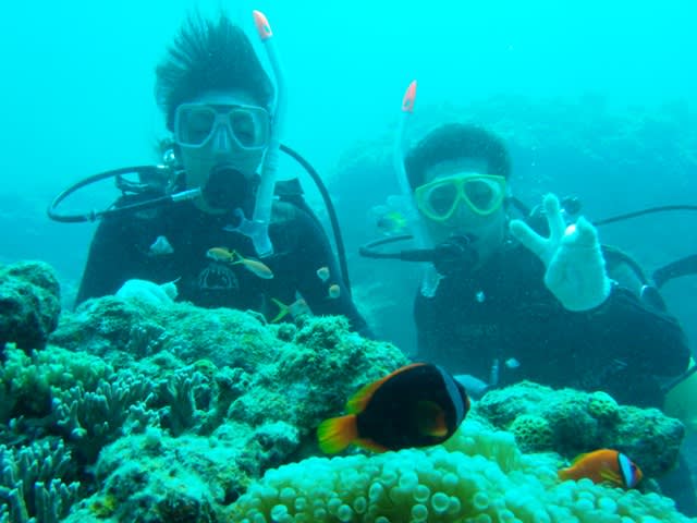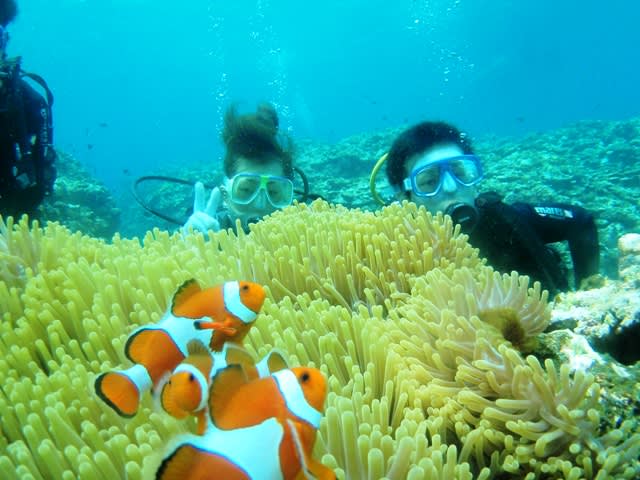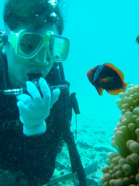 クマノミと写真を撮ったり、ウミヘビとにらめっこしたりと