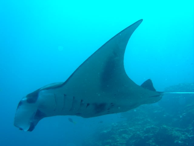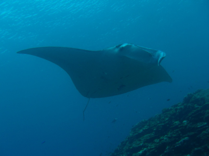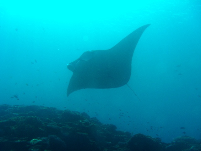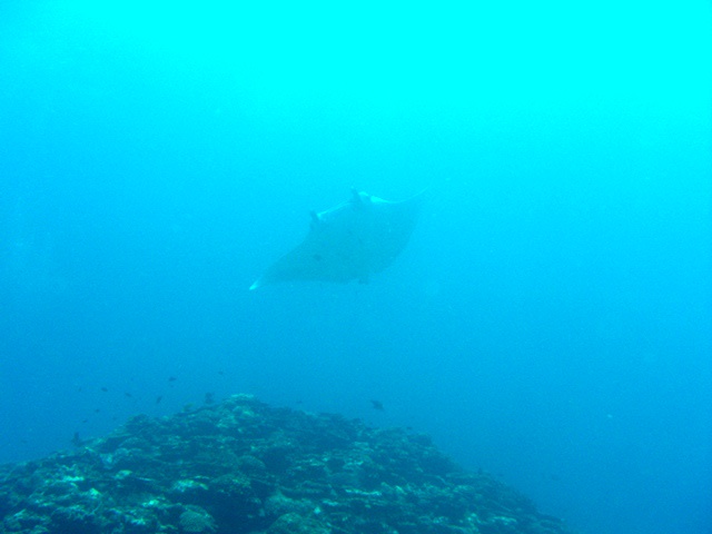 水中を泳いで行くと、すでに1枚のマンタがホバーリング♪