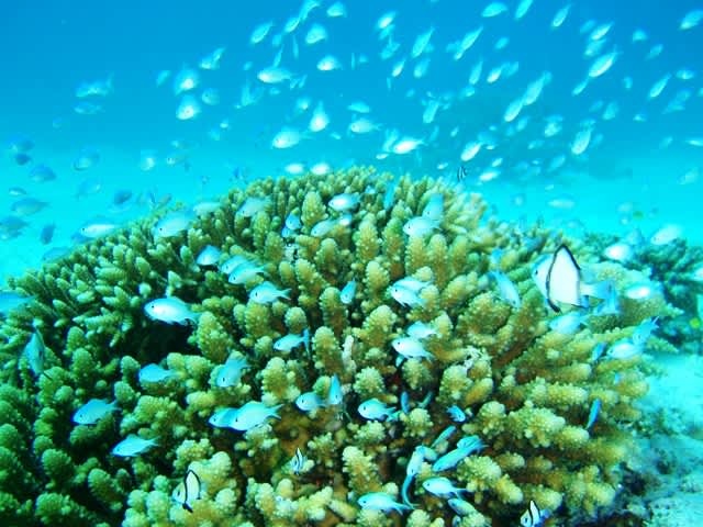 ハマクマノミが居たり、サンゴに群れるキンギョハナダイは