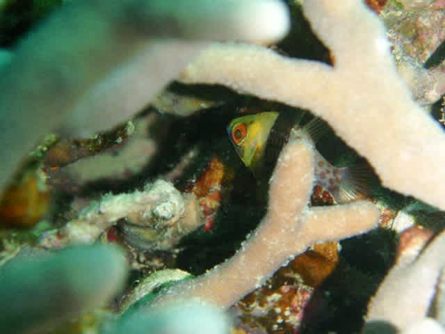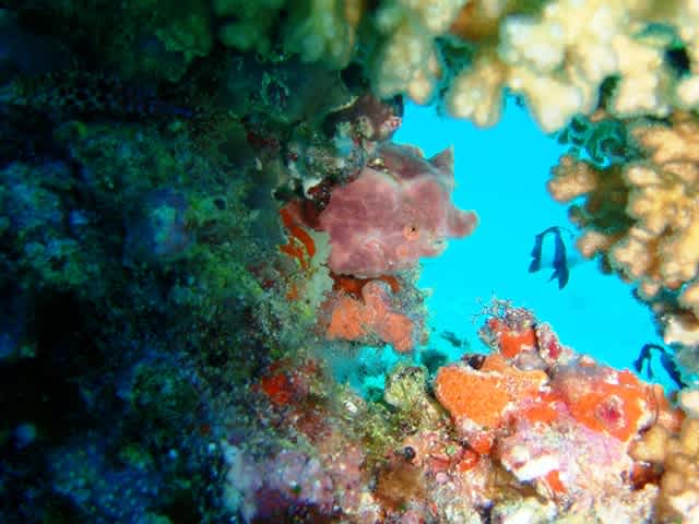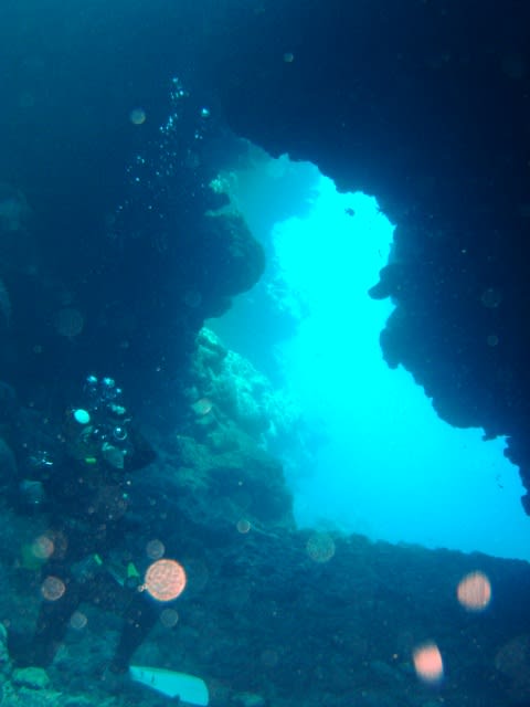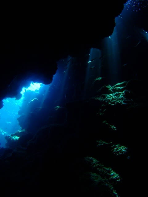 地形なポイントにエントリー↓↓サンゴの隙間から差し込む光がちょ→