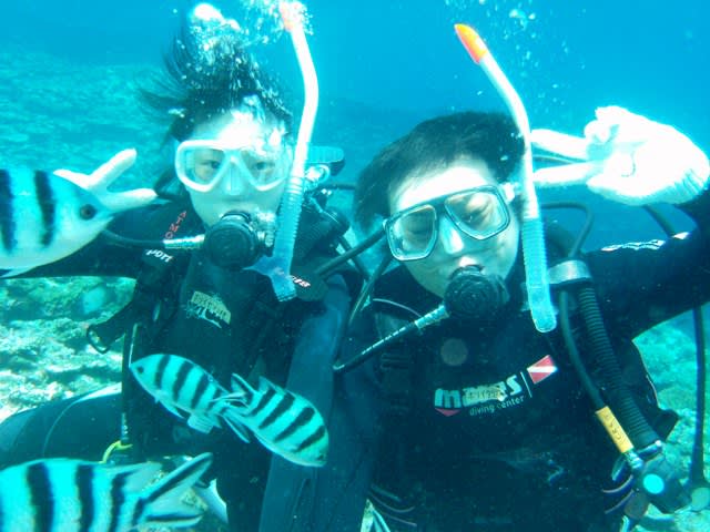 久しぶりの人もはじめての人もダイビングを楽しみました>^_^<