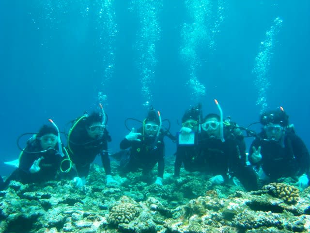 1本目は崎枝で体験チームはスノーケリング&体験ダイビングをしてきました(^^)