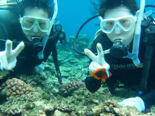 ハマクマノミやクマノミ、そしてお決まりのナマコとツーショもばっちり