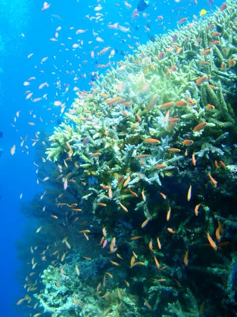 テンション上げ上げですo(^-^)o 珊瑚の回り群れるキンギョハナダイの群れは