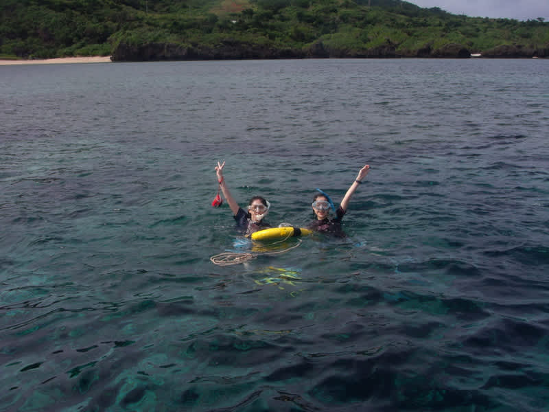 1本目は崎枝で体験チームはスノーケリングをしてきました>^_^<