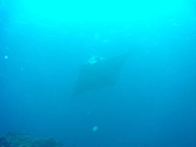 潜降後、5分ぐらい経った頃でしょうか、なんと1枚のマンタが