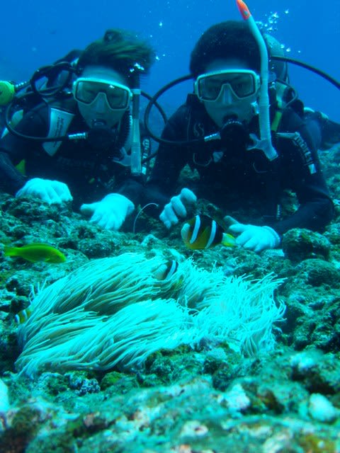 クマノミと遊んだり、バブルリングを見たり