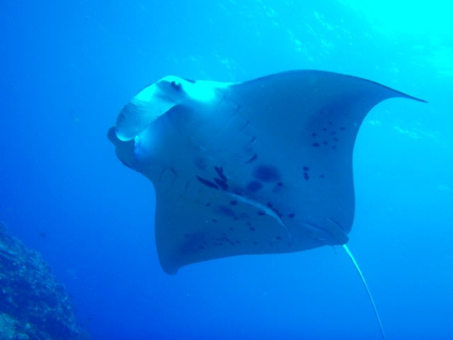 スノーケリングで海に入ると同時ぐらいにマンタロウを発見(^_-)