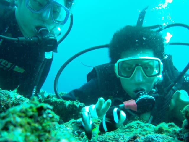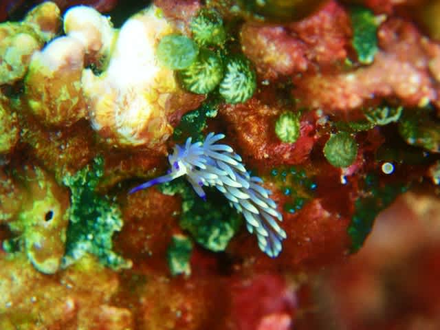 サンゴに隠れているカニをみたり、とっても小さなウミウシをみたり