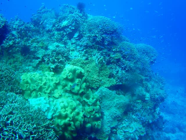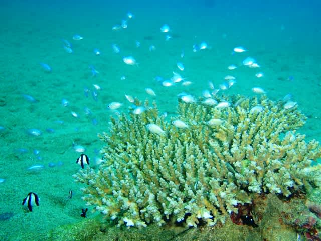 ユビエダハマサンゴに群れるスズメダイの群れはとって綺麗でしたけどね♪