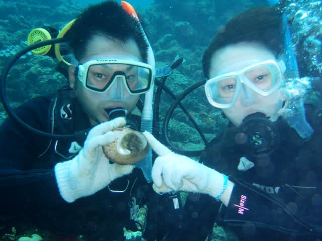 グルクンの群れに岩の隙間から夜光貝も見つかりましたよぉぉ(^^ゞ
