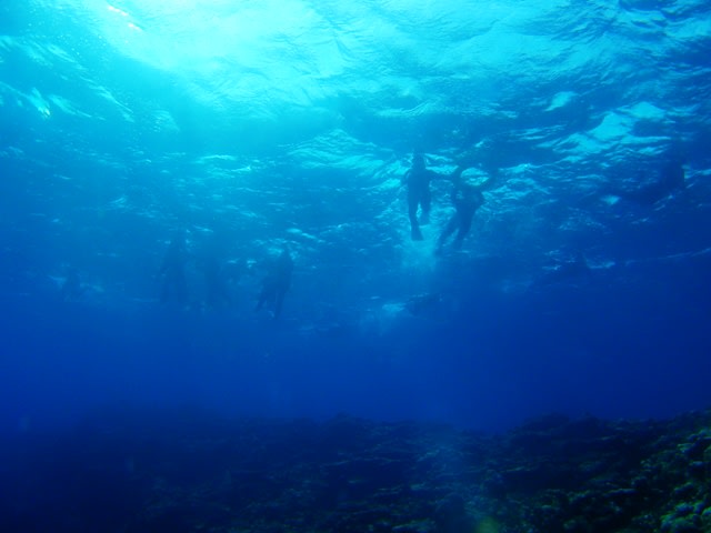 まず最初のポイントでは、スノーケルです。水面から、三角形の形をした魚をみたり