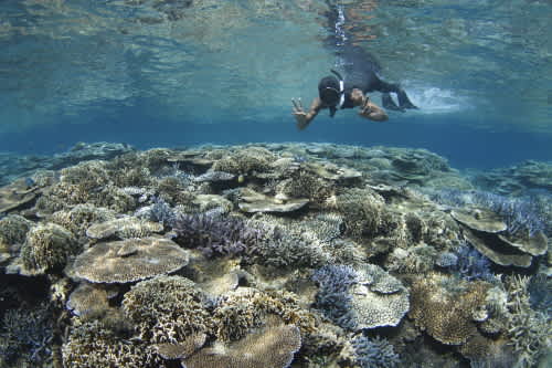 水面から、メチャメチャ綺麗なサンゴを眺めて、サンゴに群がる小魚をいっぱい見て、
