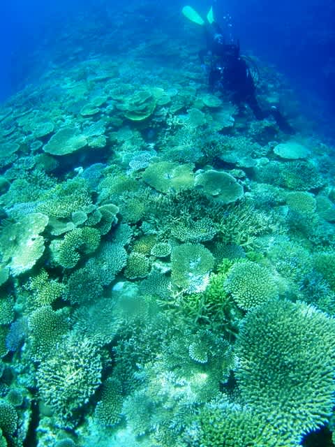 浅場には、宝石箱をひっくり返したよな枝珊瑚&テーブル珊瑚がビッシリで眺めているだけで