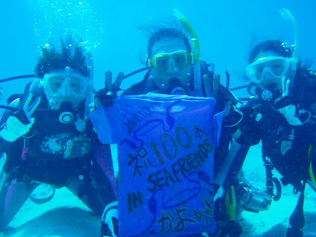本日の二本目にリピーターのカヨちゃんが祝100本記念ダイブです(●^o^●)