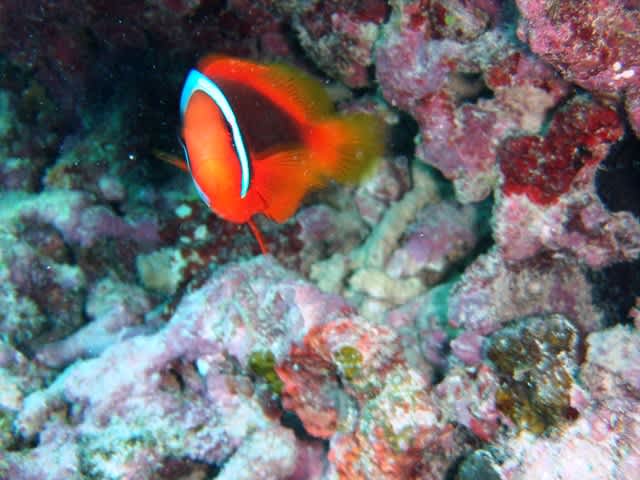 ワクワクしながら水中を移動して行くと、僕の大好きな「ハマクマノミ」や「ハナガササンゴ」を
