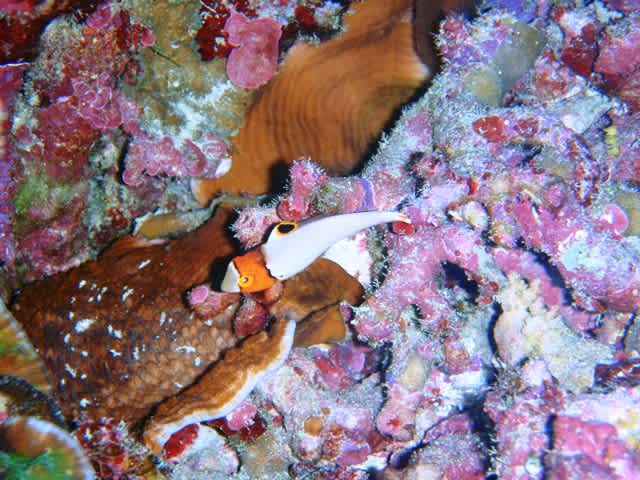 キカモヨウウミウシ、イロブダイ幼魚、