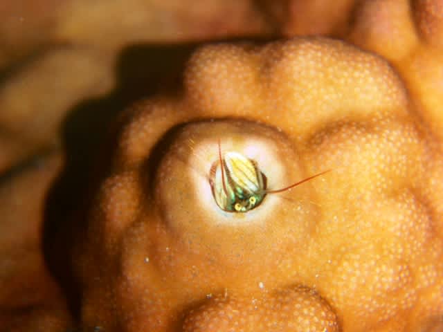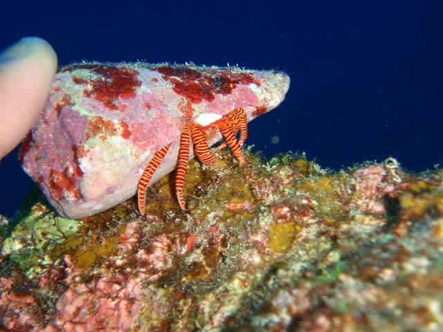 今日の生き物・キンチャクガニ、オビテンスモドキ・ベニワモンヤドカリ