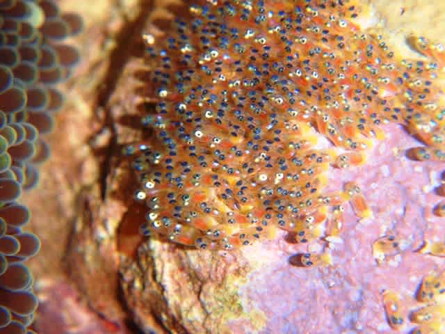 クマノミのもうすぐハッチアウトしそうなベビーを見たり、ナマコに着いてる