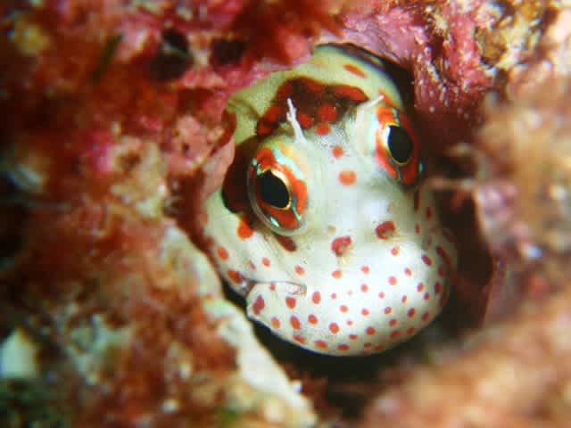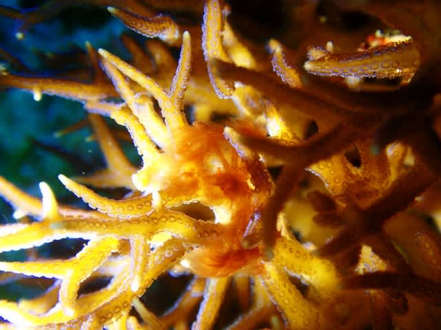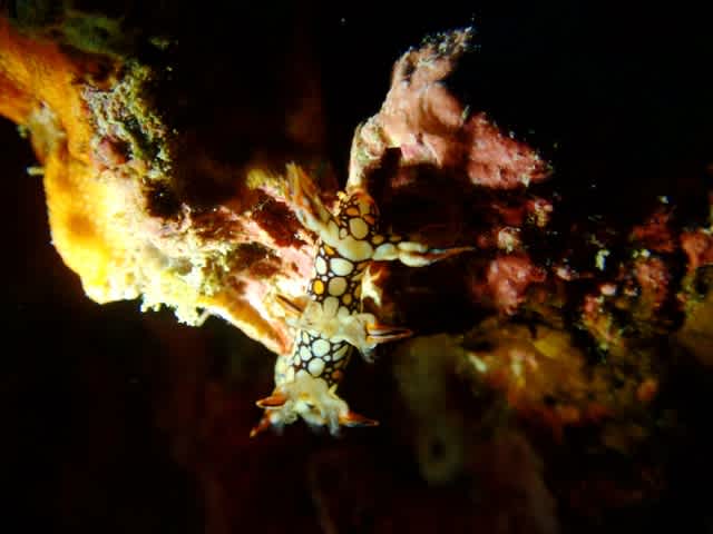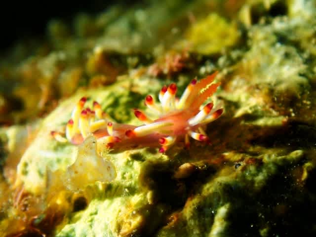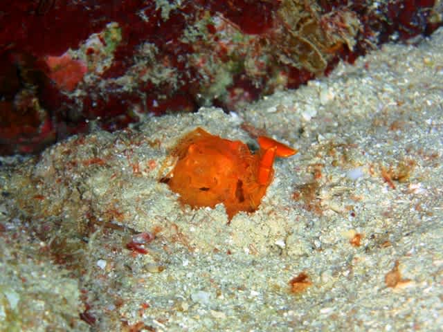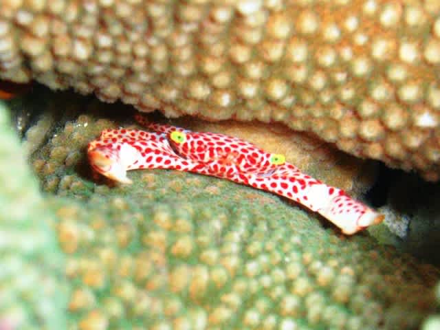 今日の生物:オオアカホシサンゴガニ ダンゴオコゼ ツマベニミノウミウシ