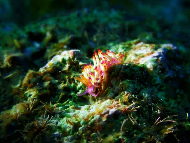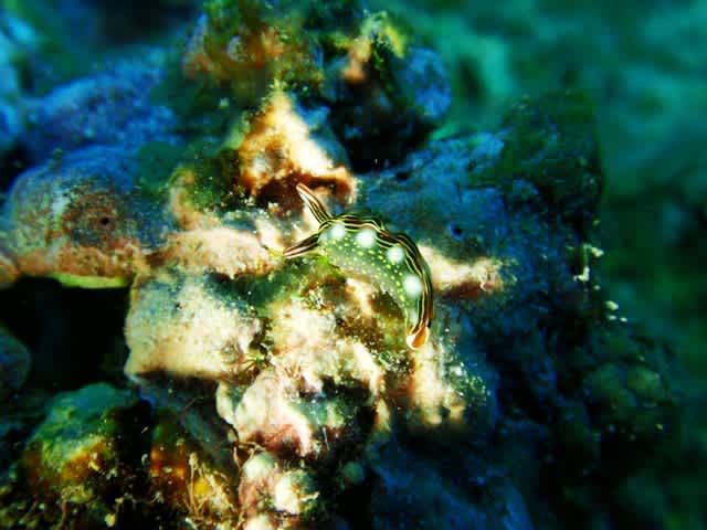 グルクンの群れ、変な形の貝、美味しそうなウミウシ、
