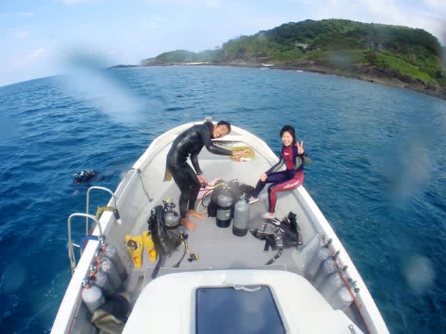 お昼休憩は、あったかご飯を食べて水面マンタも見れて大満足で本日は2本で