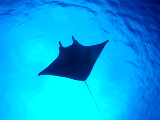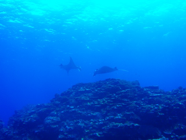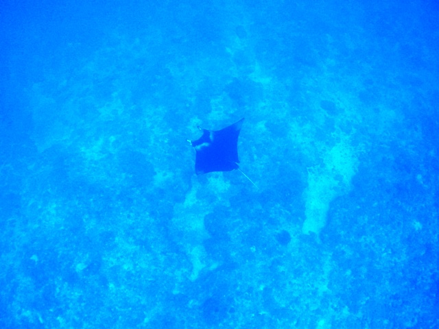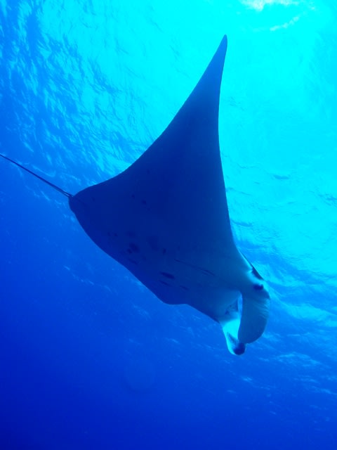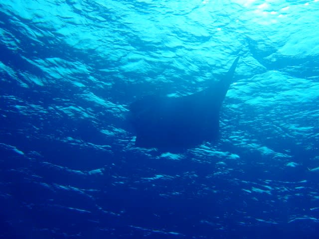 お昼休憩をとって水面を見てみると、マンタがうようよ3枚もっ!!!