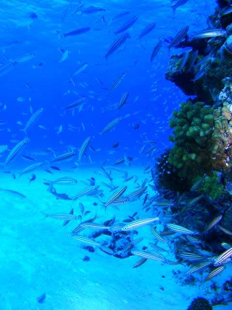 ここでは浅場のサンゴに群れるオレンジ色やピンク色の魚に癒されちゃいました★