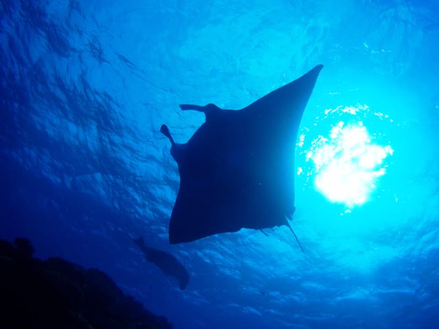 見とれているうちにもう1枚現れて、2枚のマンタロウがずーーーっとぐるぐるホバリング